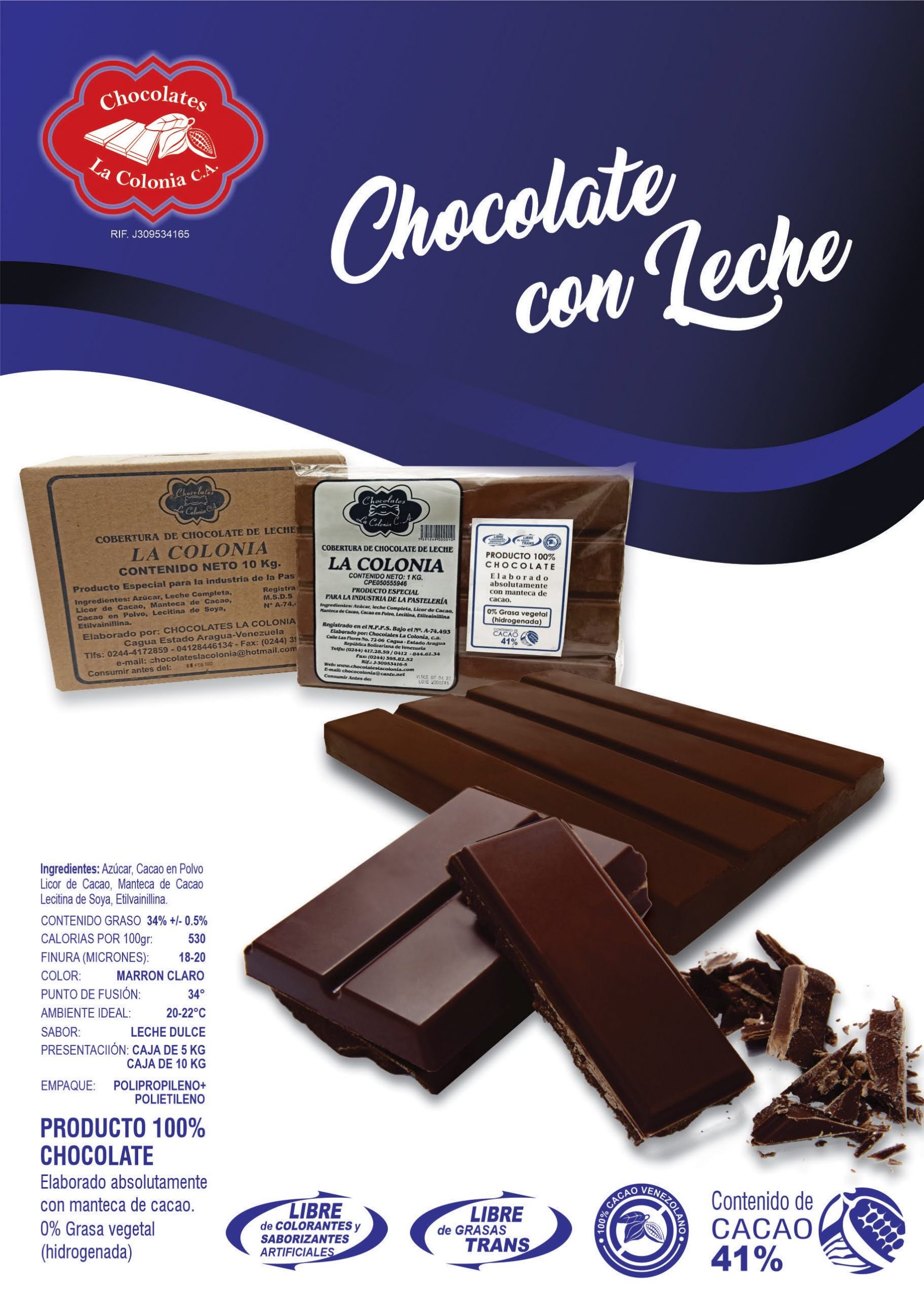 Ingredientes: Azúcar, Leche Entera en Polvo, Cacao en Polvo, Licor de Cacao, Manteca de Cacao, Lecitina de Soya, Eltilvalnillina.
