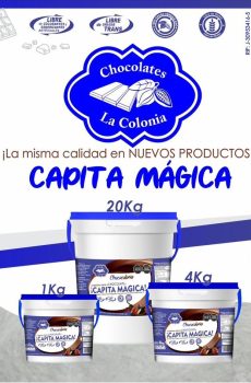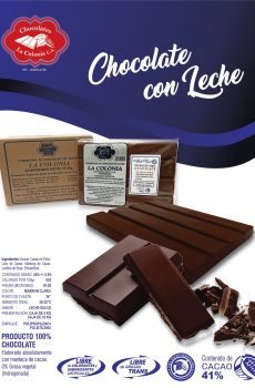 Ingredientes: Azúcar, Leche Entera en Polvo, Cacao en Polvo, Licor de Cacao, Manteca de Cacao, Lecitina de Soya, Eltilvalnillina.